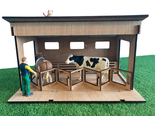 Toy Herringbone Milking Shed, fits Schleich cows, made from wood